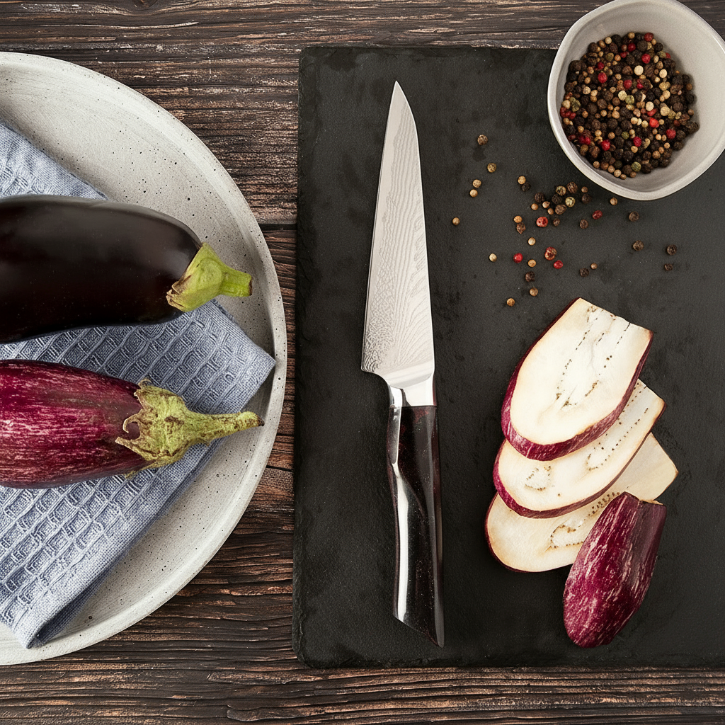 Le design du manche est inspiré du motif observé sur la galaxie dans le ciel nocturne. La lame est durable et précise avec une netteté qui peut couper à travers n'importe quoi. Vous l’aurez compris, ce couteau est le compagnon parfait pour votre cuisine. Pour faire un set complet et prêt à toutes situation, regardez les autres couteaux de la gamme Akita pour avoir une cohérence esthétique dans votre cuisine.