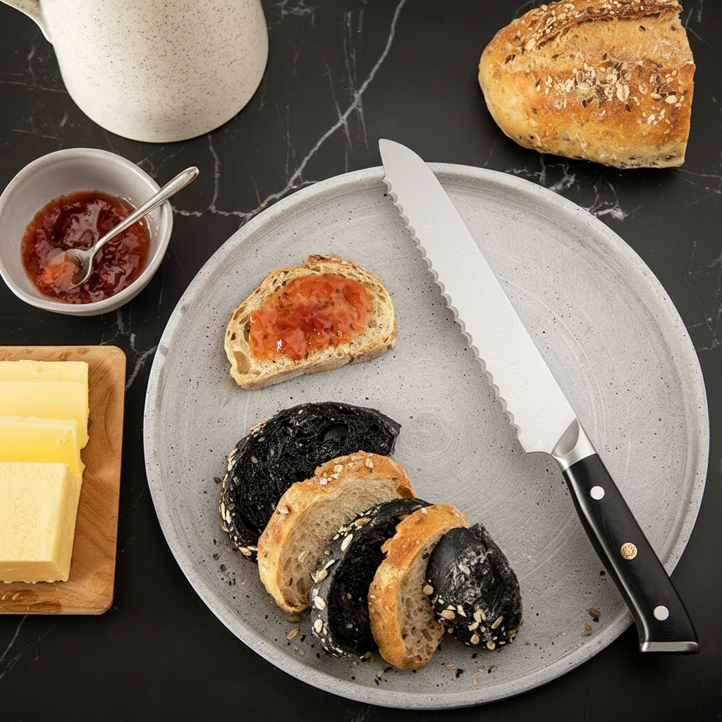 Un couteau à pain en acier damas qui ne coupe pas que du pain